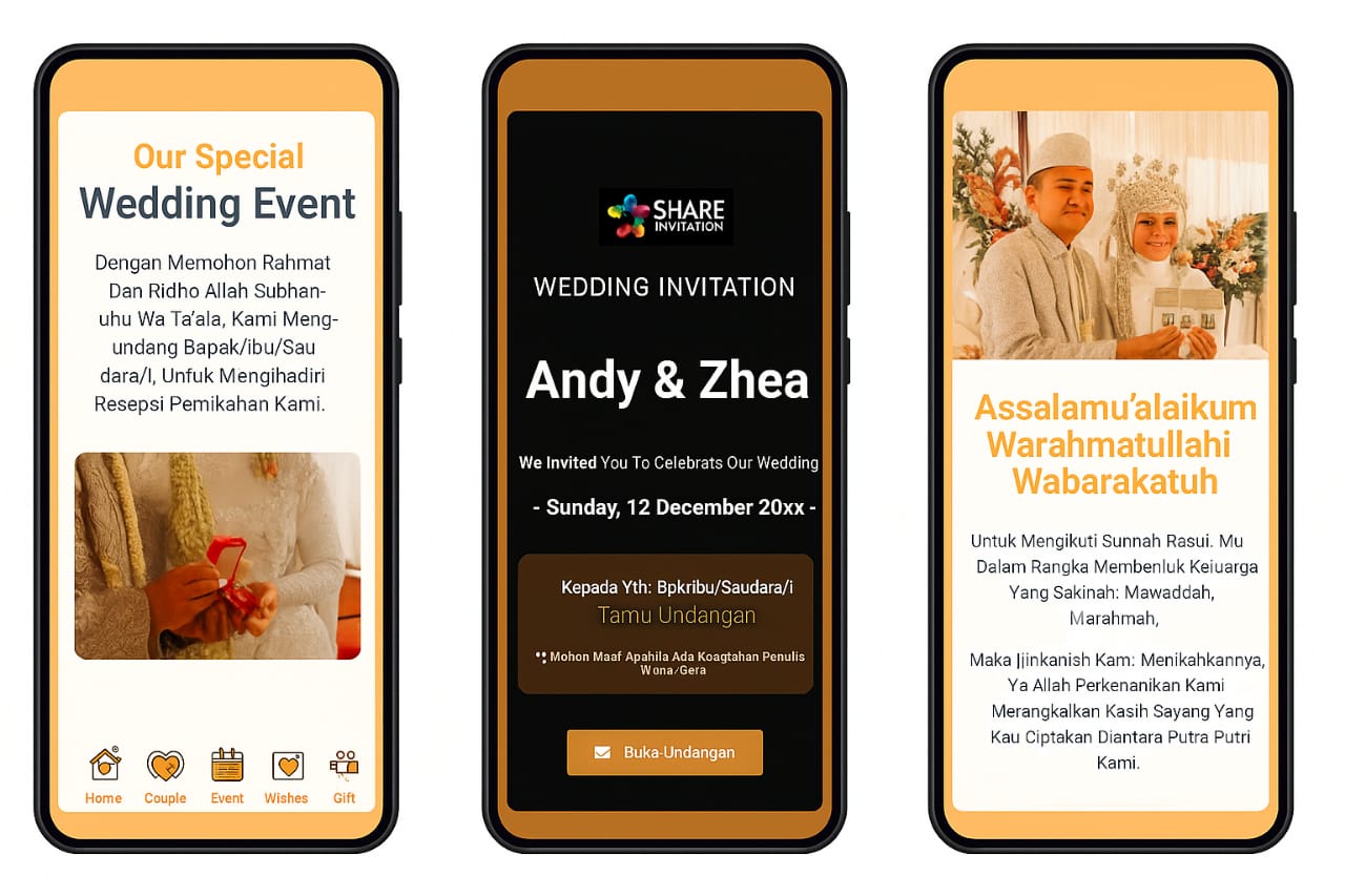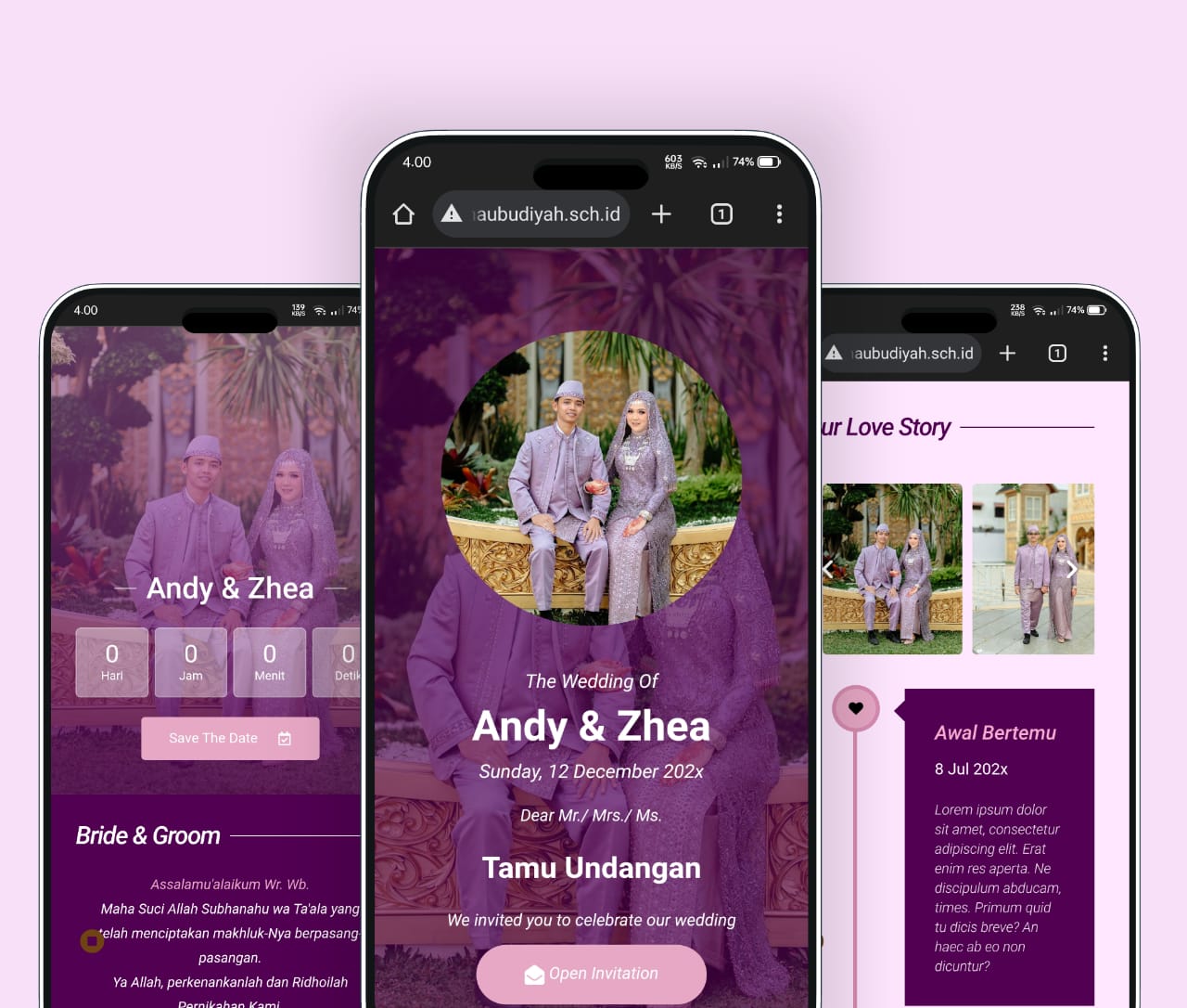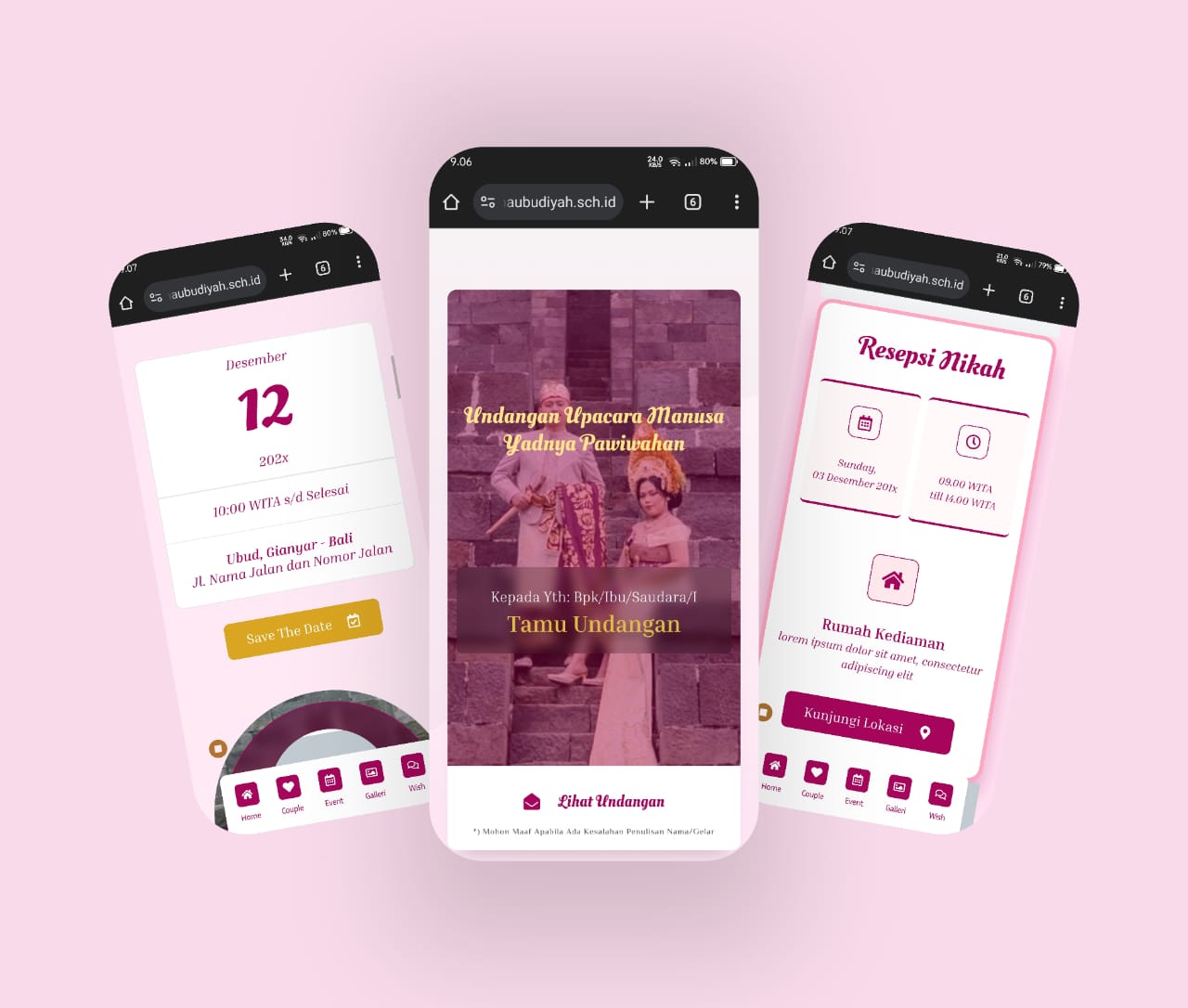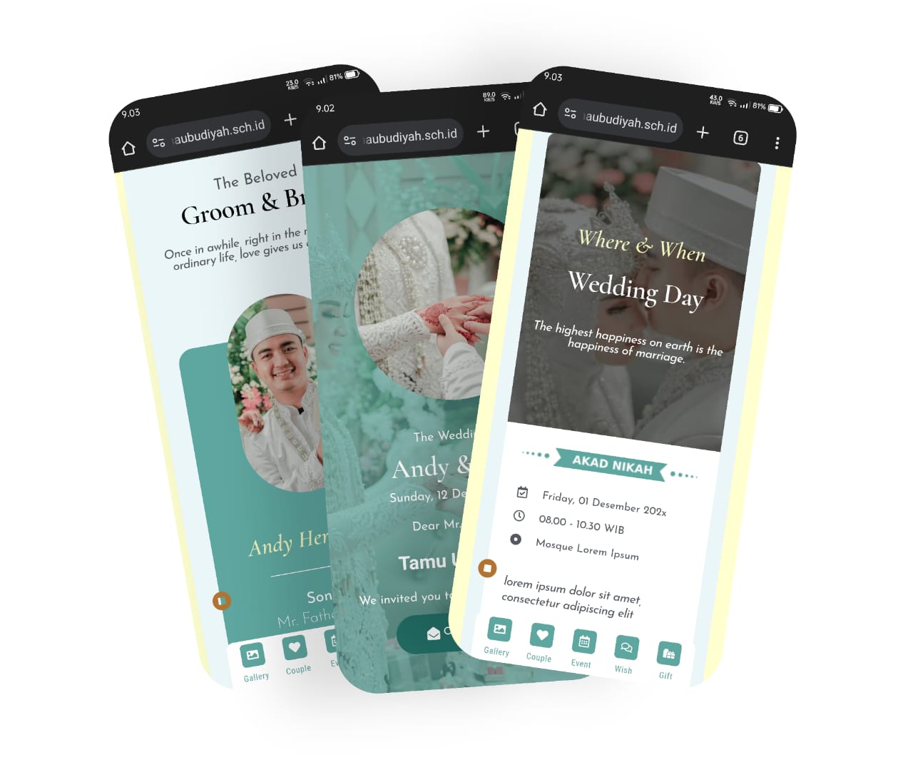 - Preview tema pada katalog ini menggunakan full fitur dari undangan website WeddingPress.